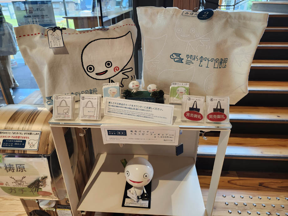 図書館には「くもっぴー」と言うオリジナルキャラがいて。グッズが売られていました。