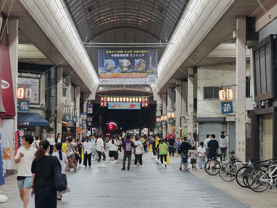 夜のアーケードを歩いているとよさこいの練習している風景を見かけました。